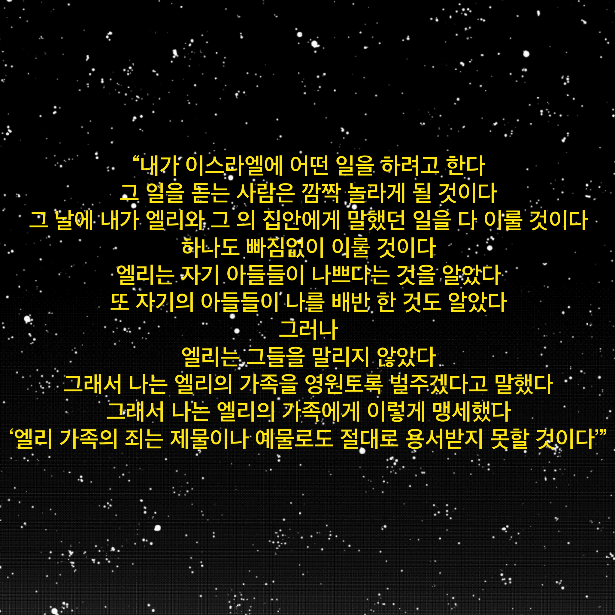 11 여호와께서 사무엘에게 이르시되 보라 내가 이스라엘 중에 한 일을 행하리니 그것을 듣는 자마다 두 귀가 울리리라