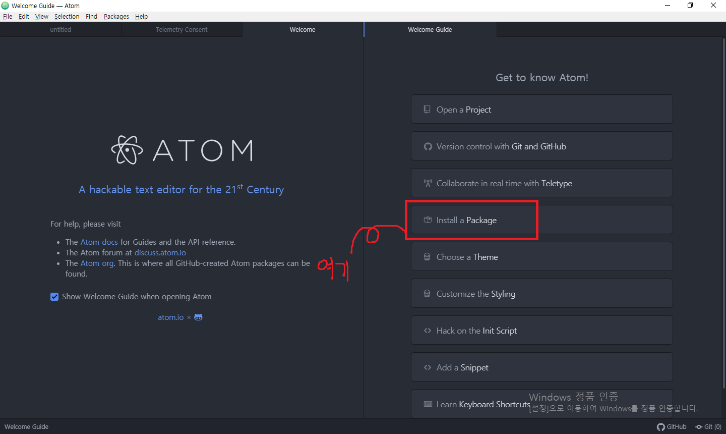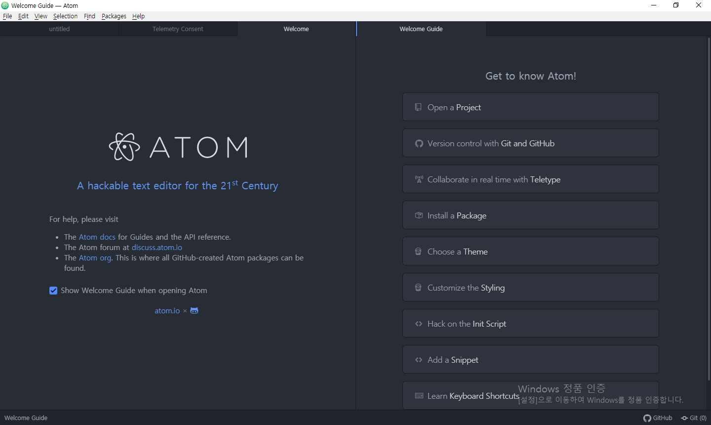 1. 아톰 실행 (미설치시 설치 아톰설치)