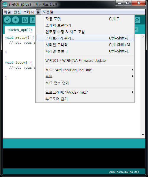 라이브러리 매니저 단축키 : Ctrl + Shift + I