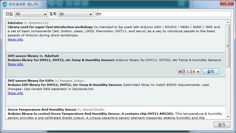 매니저 들어온김에 DHT sensor library 추가 해보았다.