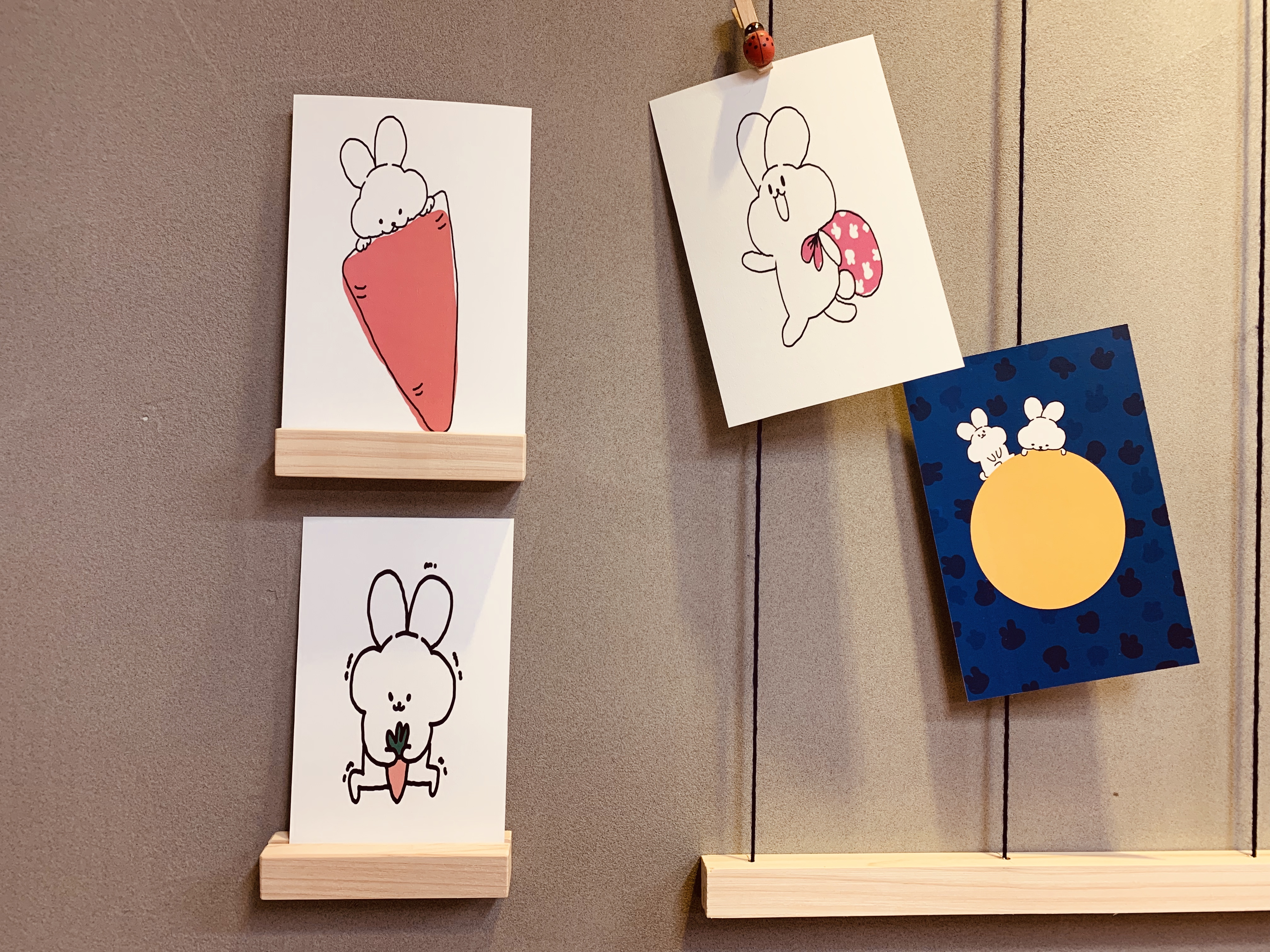 귀여운 엽서들을 아래에서 받처주는 미니 편백 원목 홀더