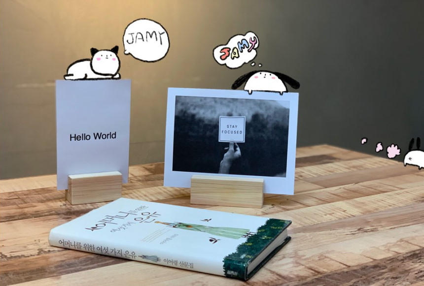 jamy wood 공방의 핸드메이드 편백 원목 메뉴 홀더를 소개합니다.