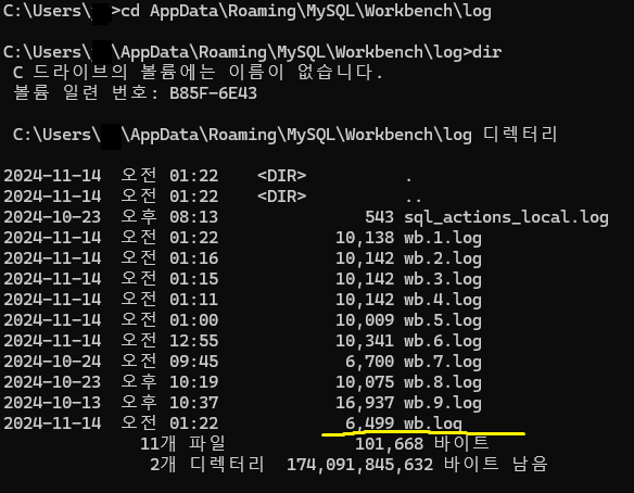 > \Users\{사용자명}\AppData\Roaming\MySQL\Workbench\log